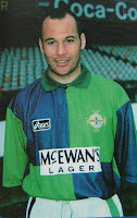O’Boyle moved to Scotland with Dunfermline in the summer of 1989. Whilst with Dunfermline he was called up by Bryan Hamilton for a Northern Ireland ‘B’ international with England, and on 10th March 1994 he scored in a 4-2 defeat at Hillsborough in Sheffield. That goal brought another call-up to the Full international squad, and he went on that summer’s trip to the USA. He won his first cap as a substitute on 3rd June against Colombia, a 2-0 defeat, and eight days later he started against Mexico in a 3-0 defeat.